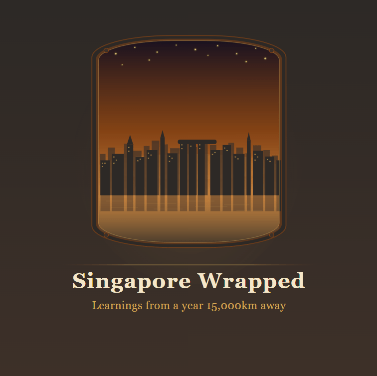 Almost a year ago, I landed in Singapore on a trial basis. I’d agreed to come over, see if the work made sense, see if the city made sense, and then make a decision. Two weeks later, I’d moved there for the year.